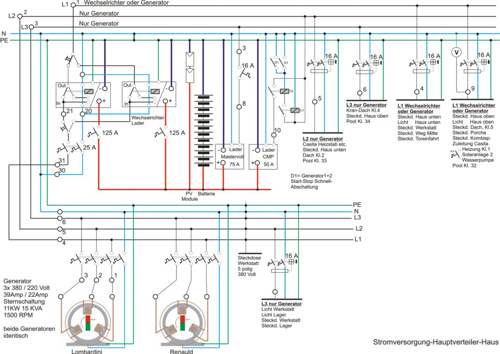 anstatt von den Batterien vom Generator versorgt. Gleichzeitig